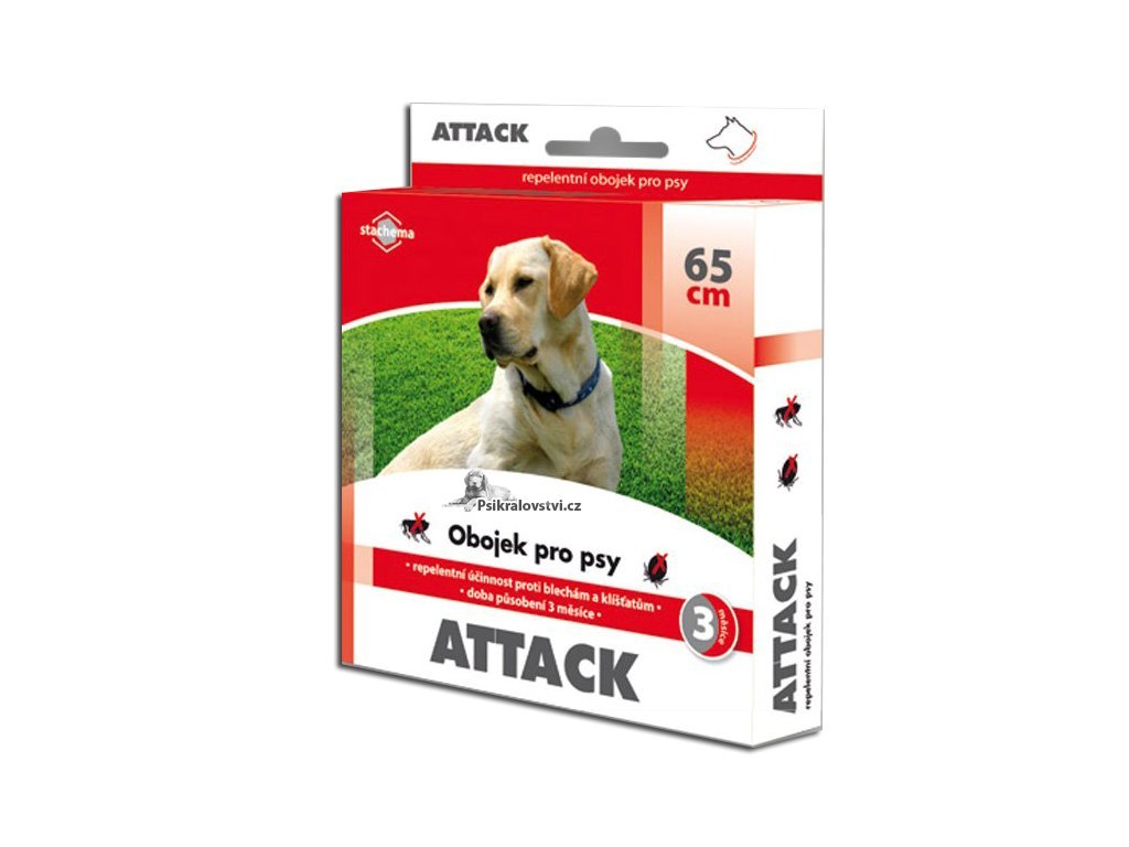 Attack obojek obsahuje látku geraniol proti blechám a klíšťatům pro psy.