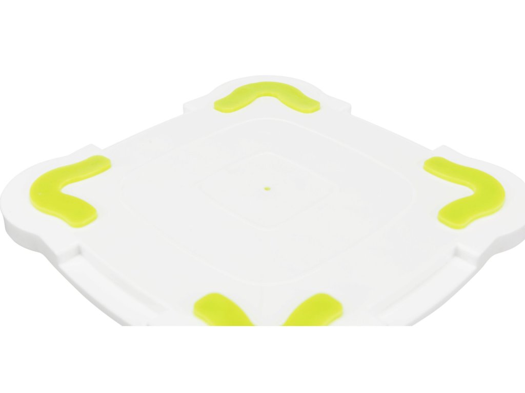 Podložka je vyroben z kombinace termostatické gumy a plastu. Gumové rohy v dolní části talíře dobře přilnou k podlaze a omezují jeho posouvání po podlaze.