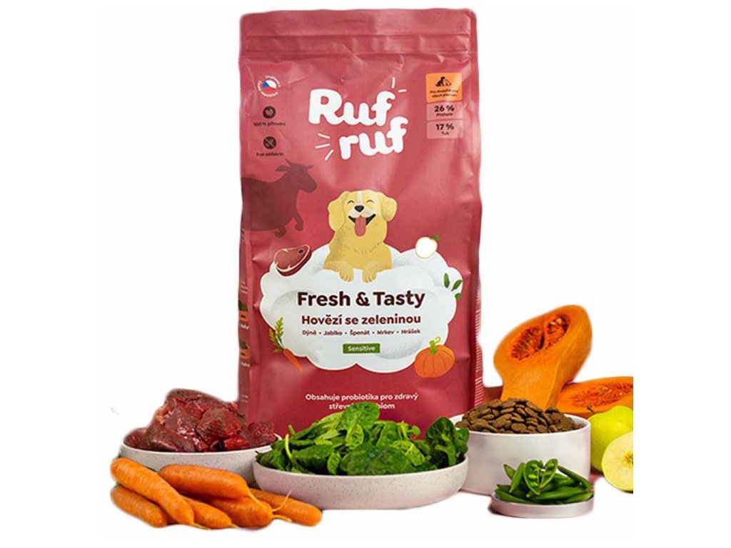 V Rufruf začali s opravdovým jídlem pro psy. Parťákům v české značce Rufruf nejde o to, aby naplnili psům břicho, ale aby podpořili jejich well-being. Tedy celkové zdraví a psychickou pohodu psa. Do krmiv proto nepoužívají žádná levná plnidla, ale naopak přidávají živá probiotika a bylinky. Podle posledních výzkumů je to totiž u psů stejné, jako u lidí. Zdraví začíná ve střevech. Čím víc přátelských bakterií v mikrobiomu, tím lepší imunita a nálada. Rufruf používá čerstvé maso a šťavnatou zeleninu od lokálních farmářů. Suroviny jsou vařeny na páře pro maximální zachování vitamínů a minerálů.